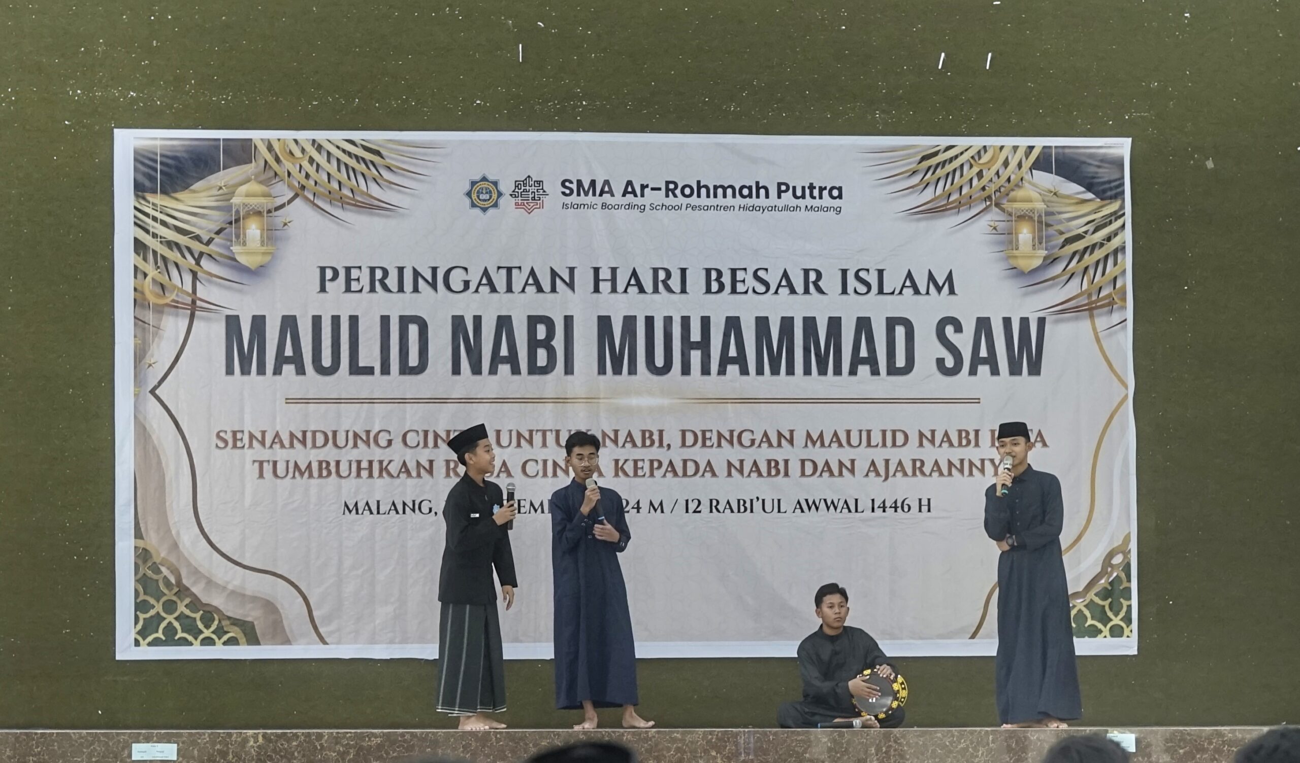 ARROHMAHPUTRA.COM — SMA Ar-Rohmah Putra Islamic Boarding School Pesantren Hidayatullah Malang menggelar Peringatan Hari Besar Islam Maulid Nabi Muhammad SAW. di Aula LPI Ar-Rohmah Putra, Senin (17/9).