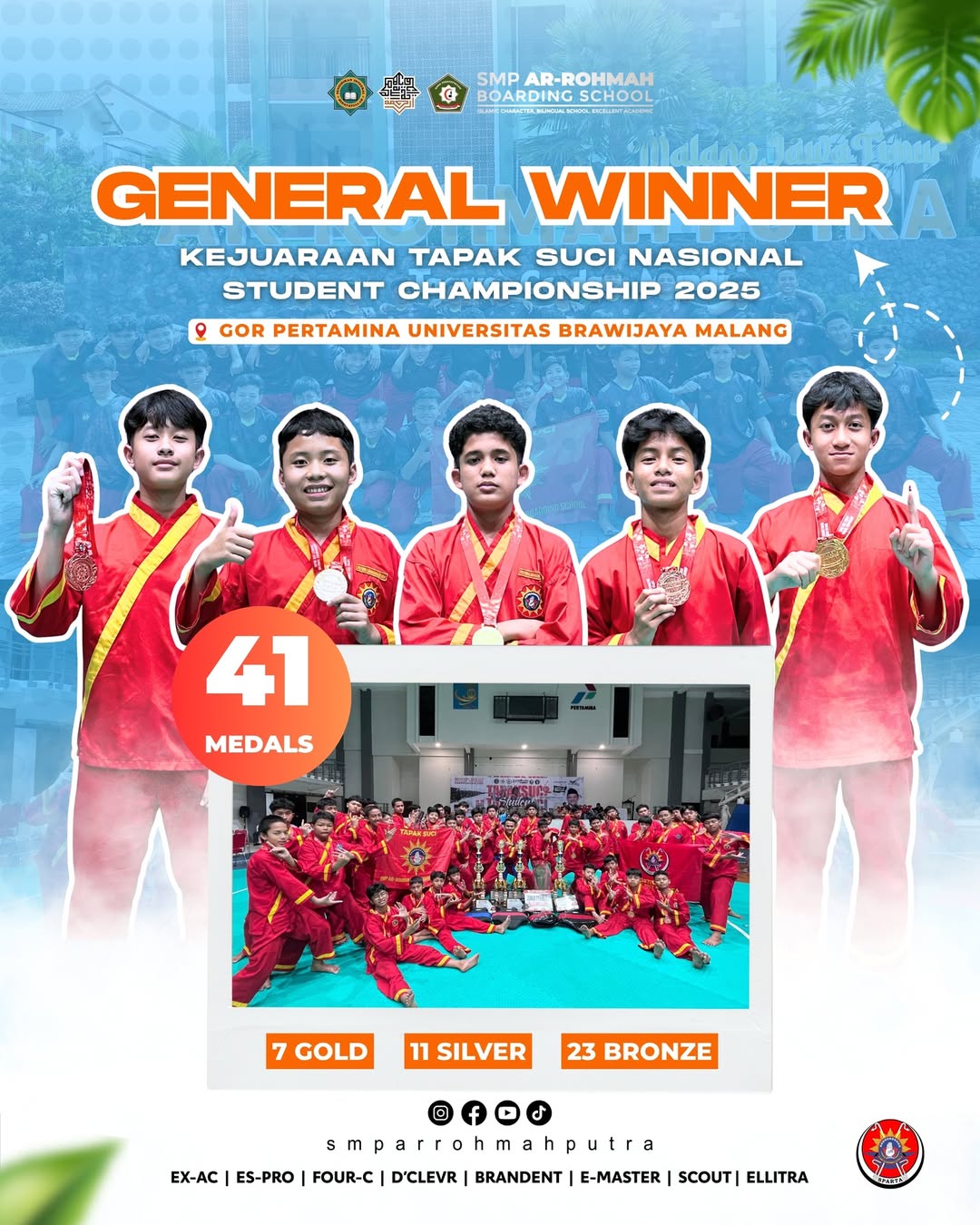 ARROHMAHPUTRA.COM — Prestasi membanggakan kembali ditorehkan SMP Ar-Rohmah Putra Islamic Boarding School Malang dalam ajang “Tapak Suci Student National Championship 2025” yang dilaksanakan pada 28-30 Juli 2025 di GOR Pertamina Universitas Brawijaya Malang.